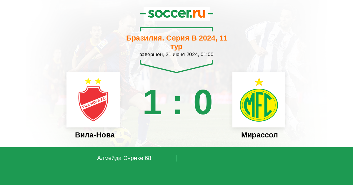 Протокол матча Вила-Нова против Мирассол