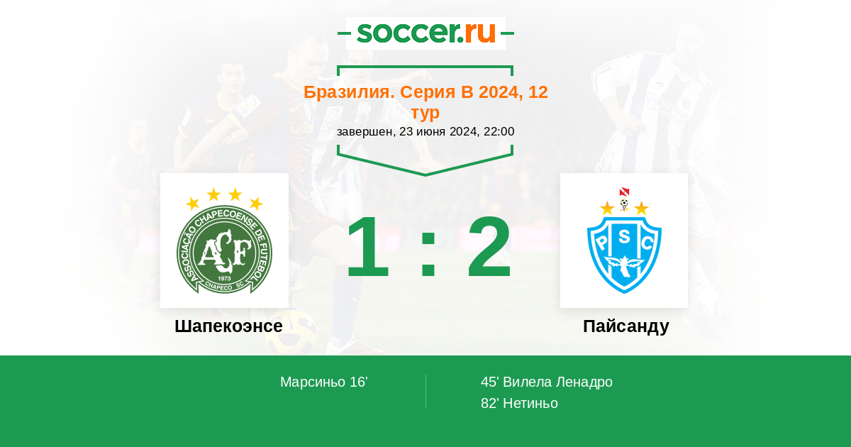 Протокол матча Шапекоэнсе против Пайсанду