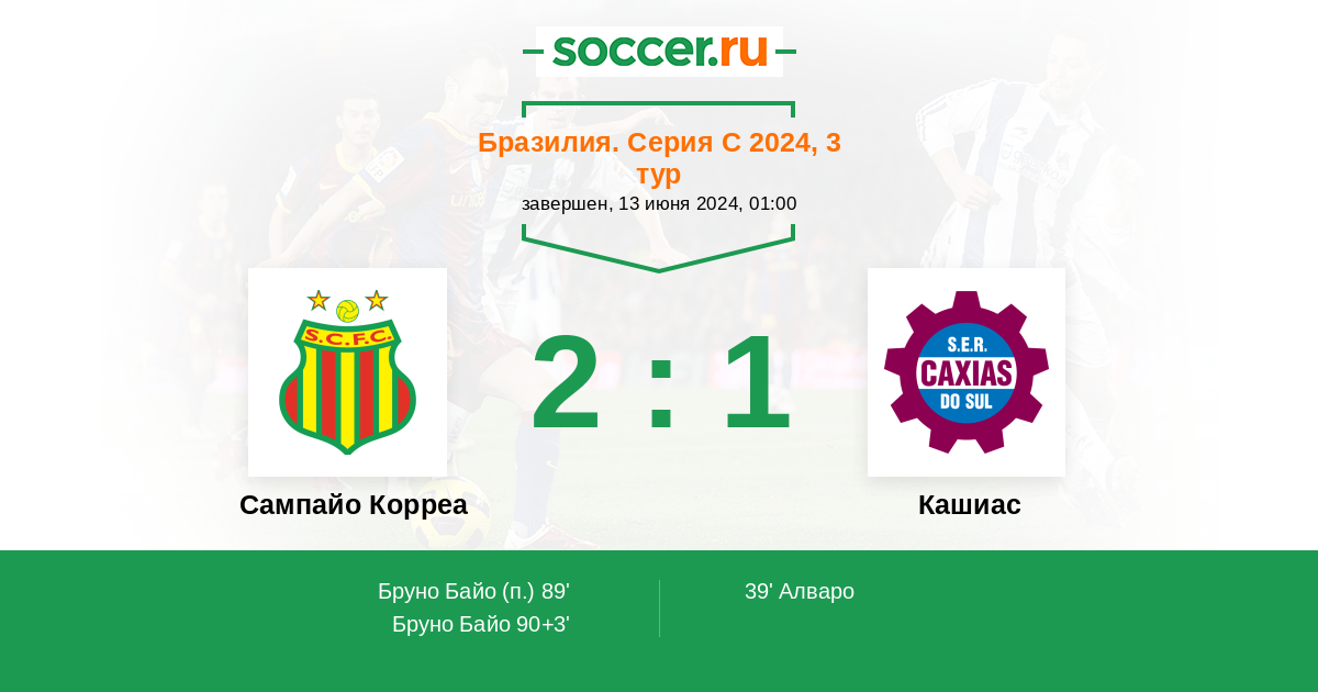 Протокол матча Сампайо Корреа против Кашиас