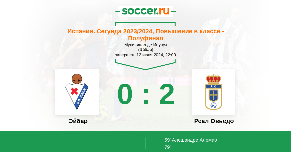 Протокол матча Эйбар против Реал Овьедо