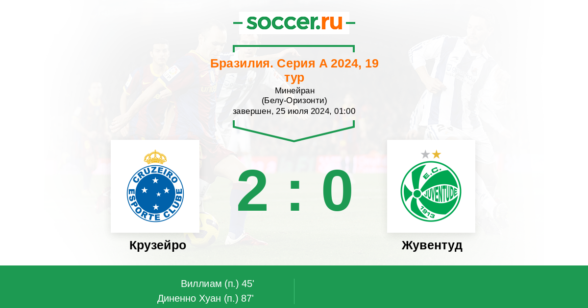 Протокол матча Крузейро против Жувентуд