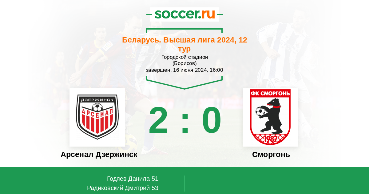 Протокол матча Арсенал Дзержинск против Сморгонь