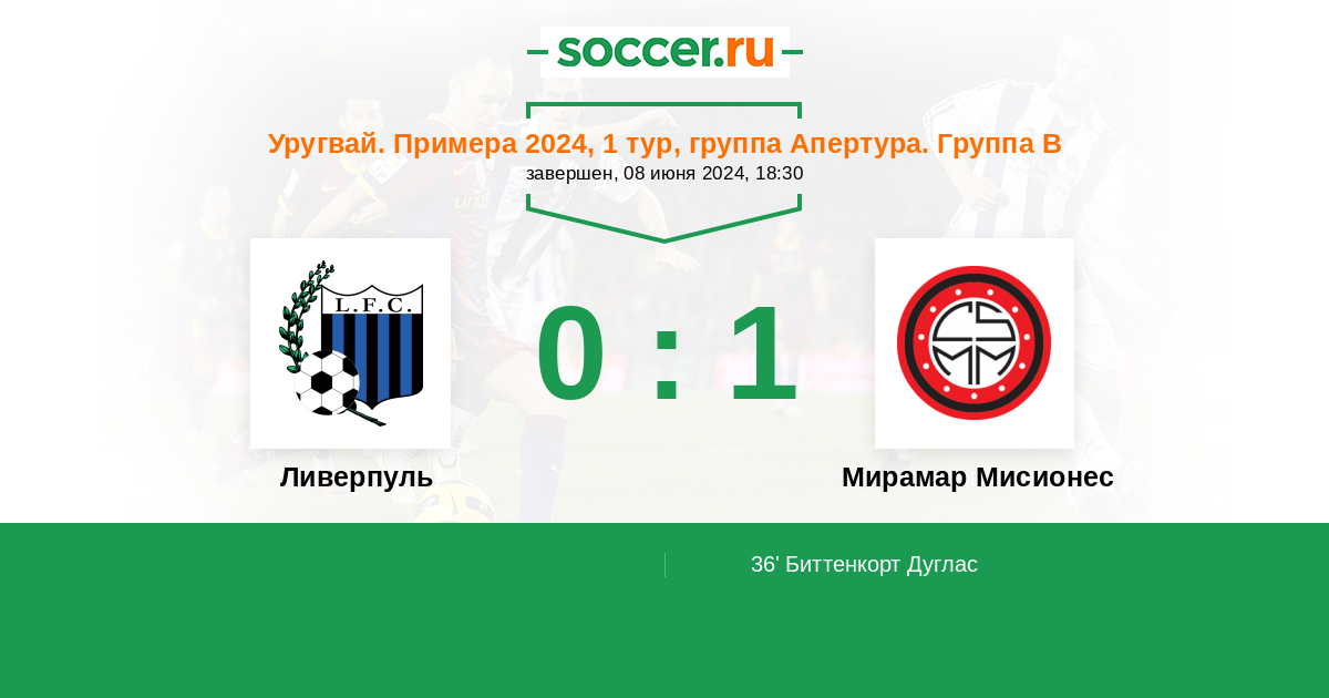 Протокол матча Ливерпуль против Мирамар Мисионес