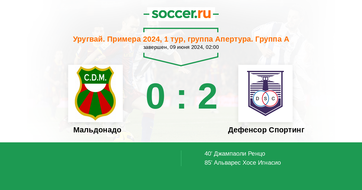 Протокол матча Мальдонадо против Дефенсор Спортинг
