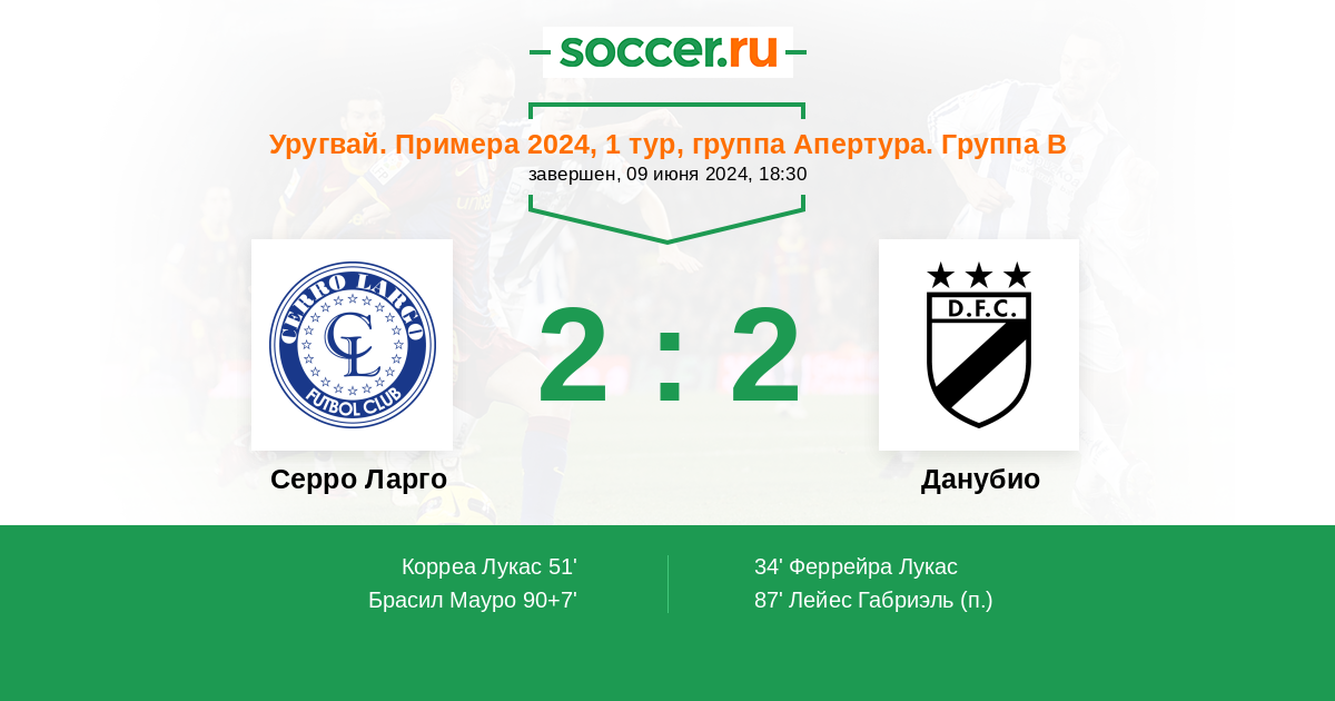 Протокол матча Серро Ларго против Данубио