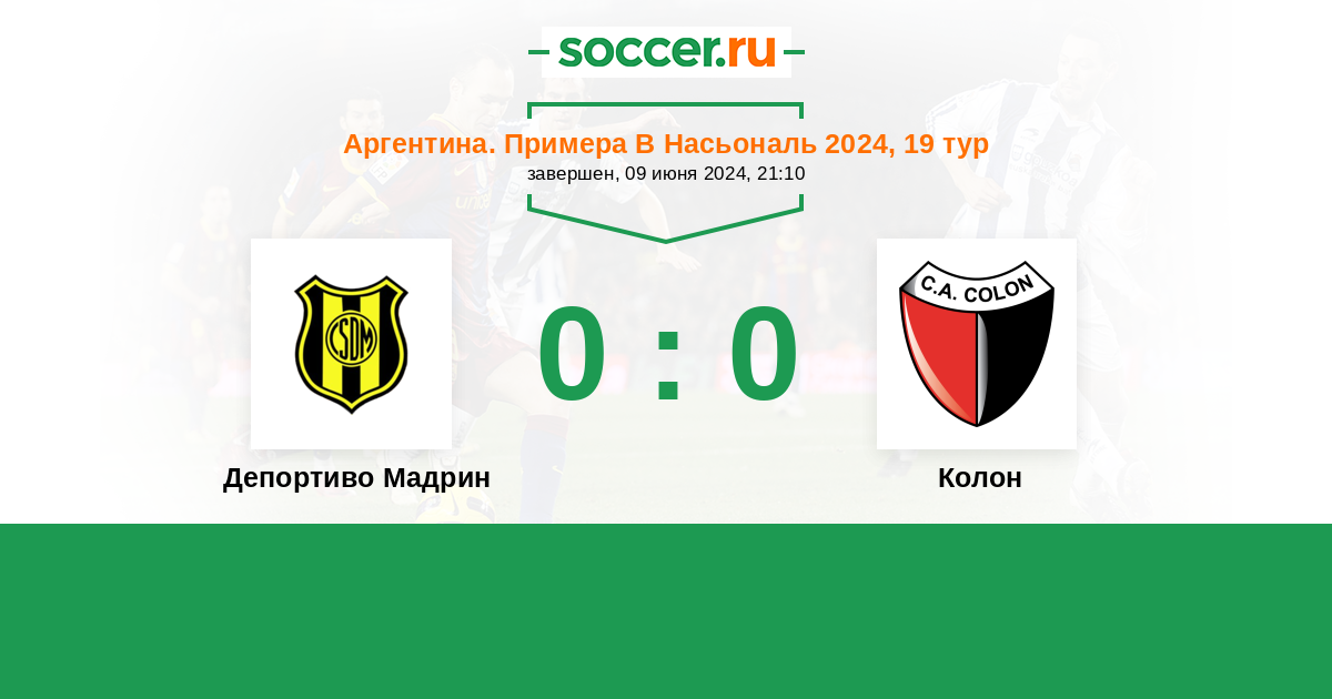 Протокол матча Депортиво Мадрин против Колон