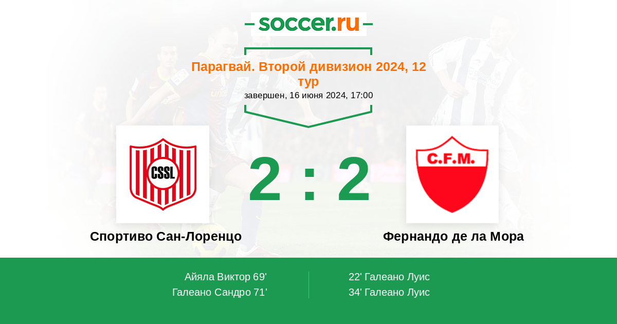 Протокол матча Спортиво Сан-Лоренцо против Фернандо де ла Мора