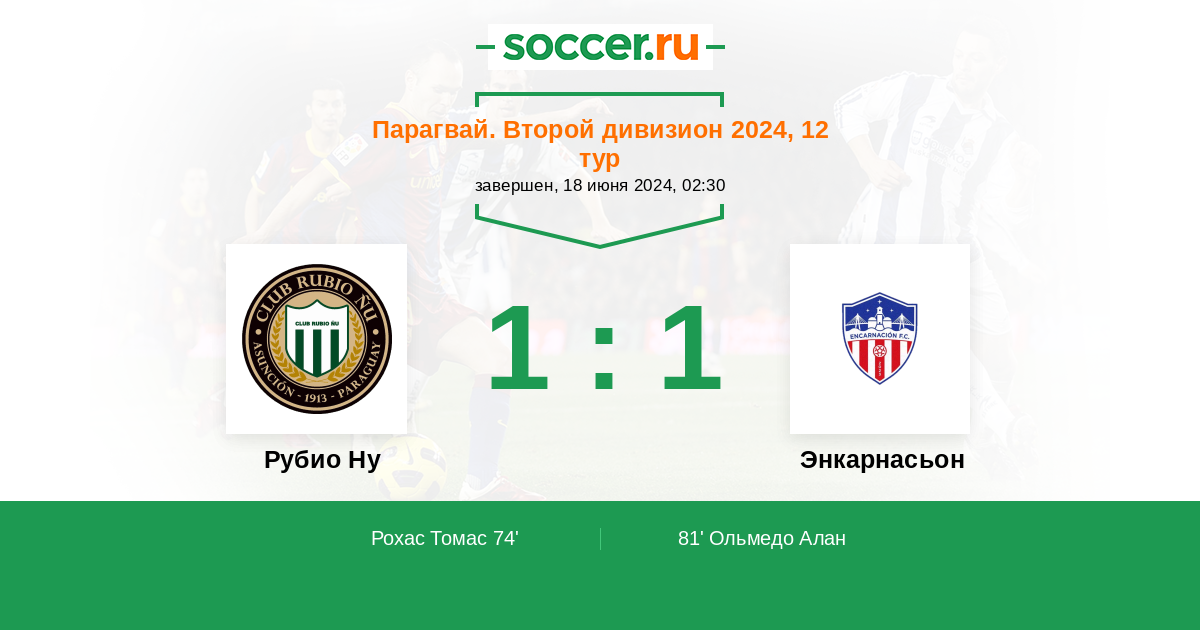 Протокол матча Рубио Ну против Энкарнасьон