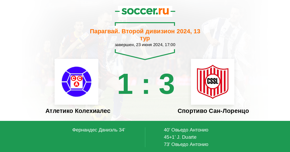Протокол матча Атлетико Колехиалес против Спортиво Сан-Лоренцо