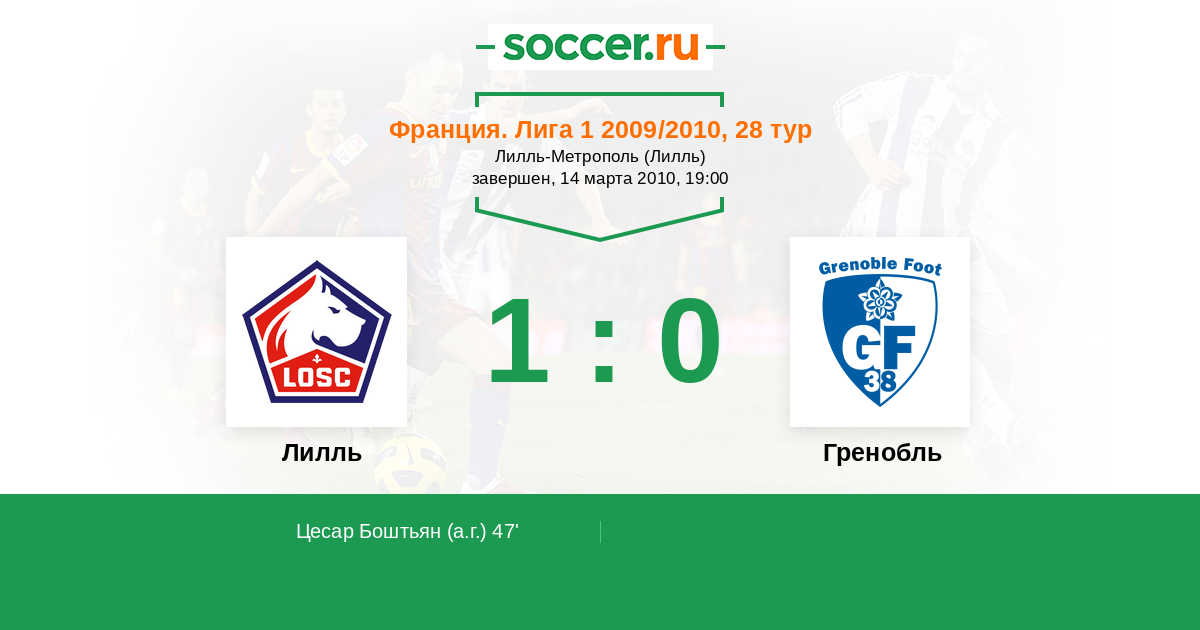 Протокол матча Лилль против Гренобль