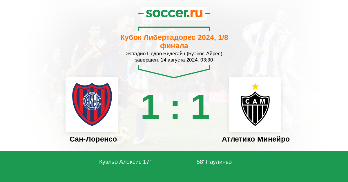 Протокол матча Сан-Лоренсо против Атлетико Минейро