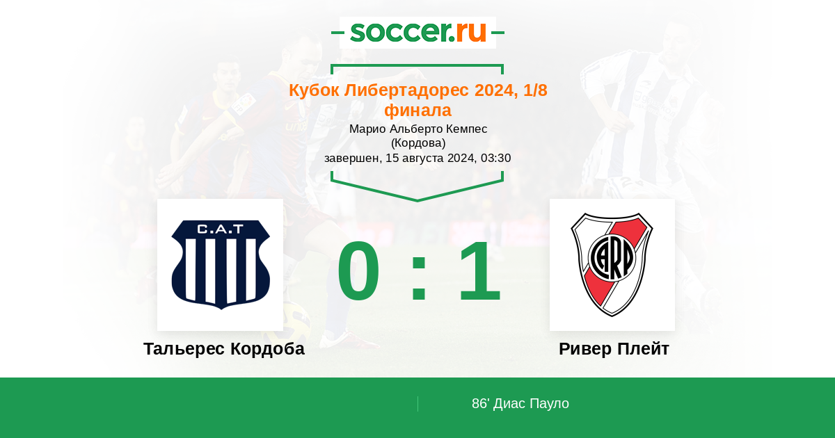 Протокол матча Тальерес Кордоба против Ривер Плейт