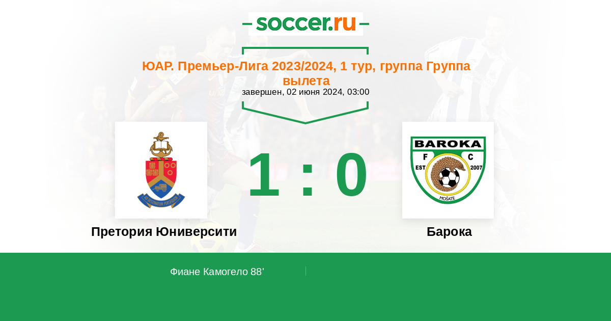 Протокол матча Претория Юниверсити против Барока