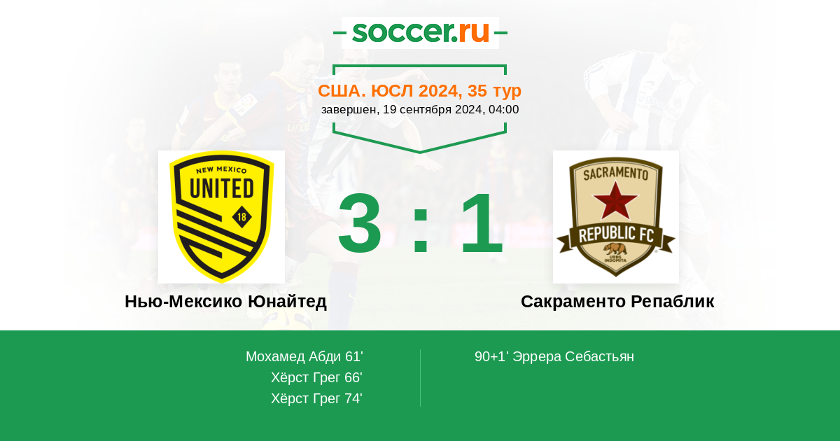 Протокол матча Нью-Мексико Юнайтед против Сакраменто Репаблик