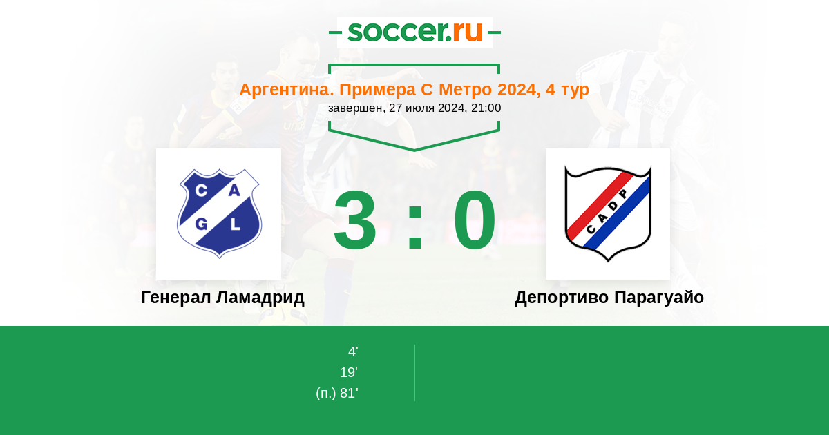 Протокол матча Генерал Ламадрид против Депортиво Парагуайо