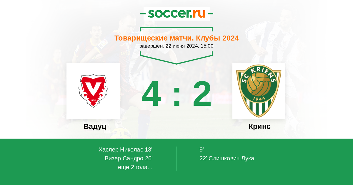 Протокол матча Вадуц против Кринс