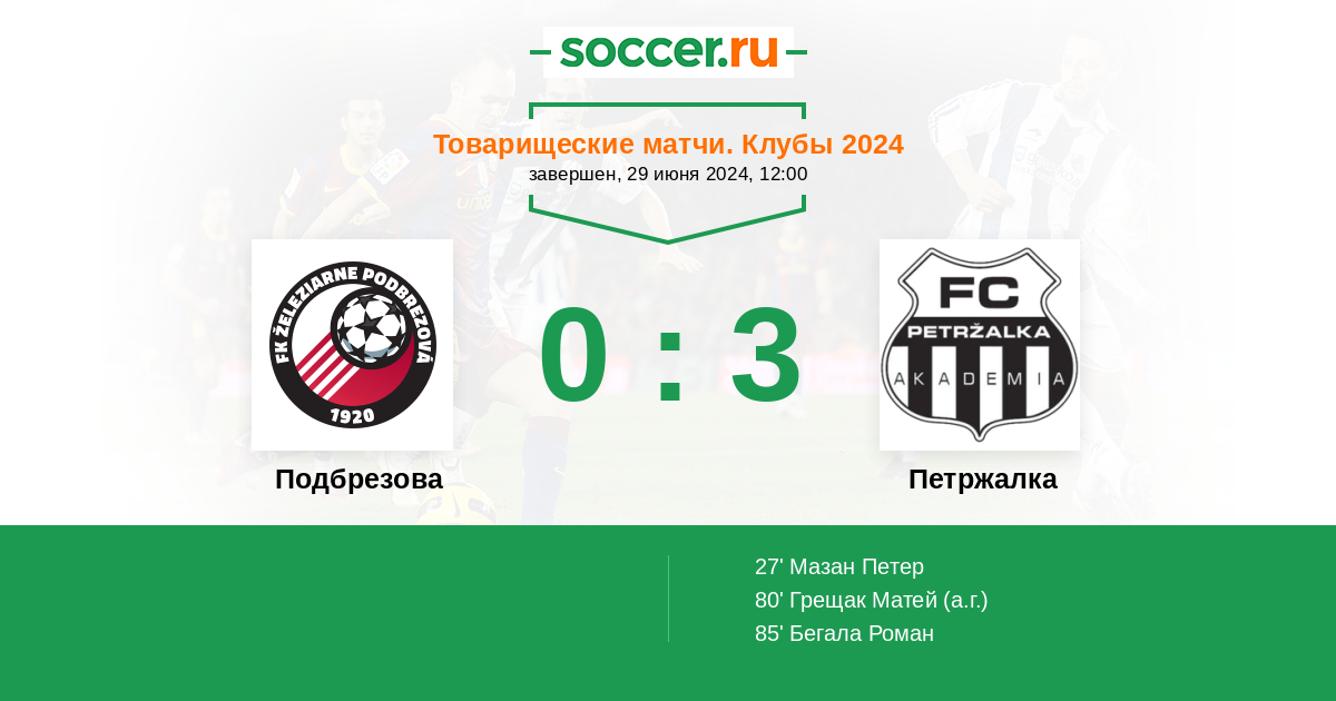 Протокол матча Подбрезова против Петржалка