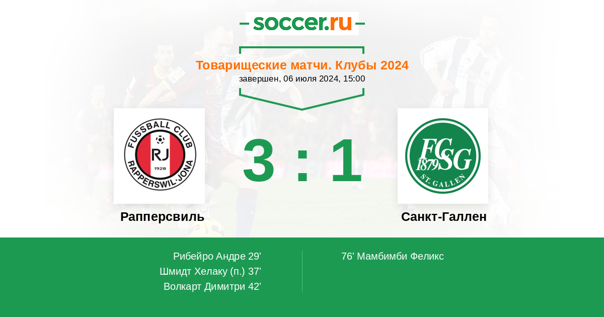 Протокол матча Рапперсвиль против Санкт-Галлен