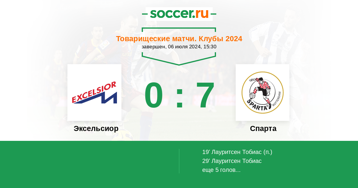 Протокол матча Эксельсиор против Спарта