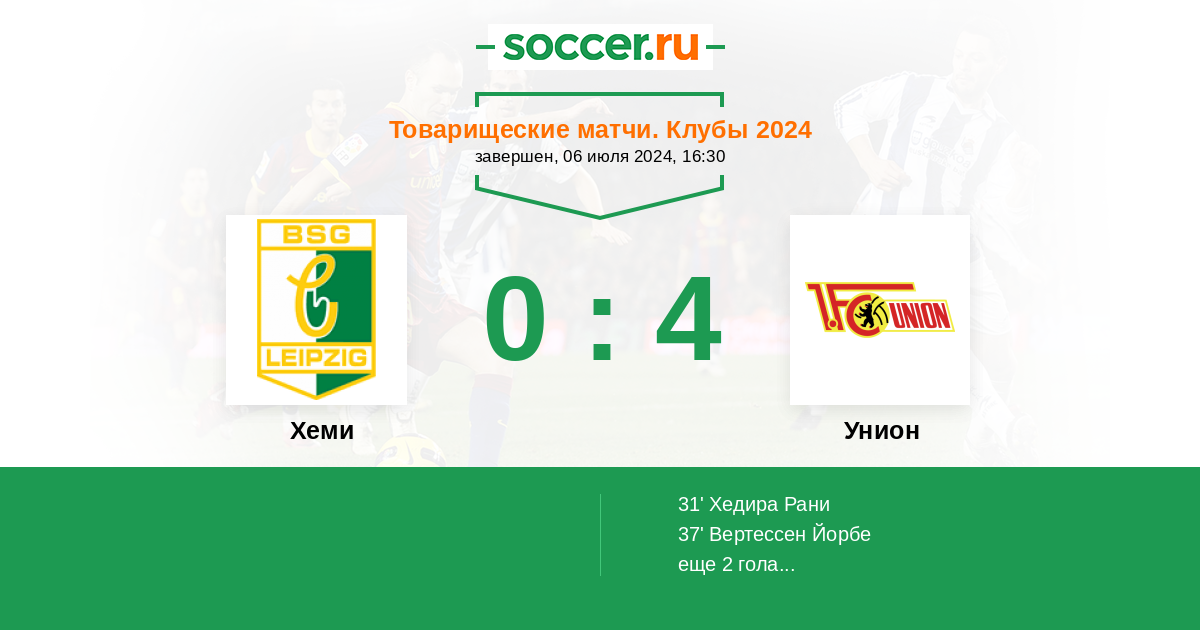 Протокол матча Хеми против Унион
