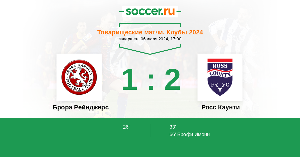 Протокол матча Брора Рейнджерс против Росс Каунти