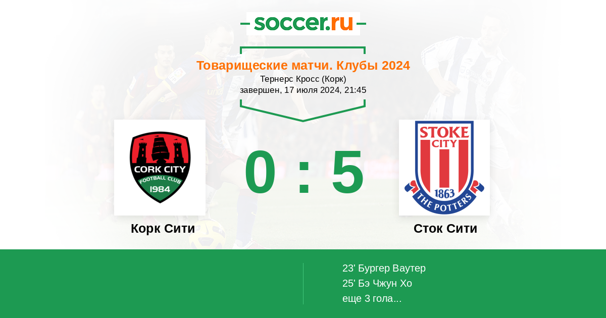 Протокол матча Корк Сити против Сток Сити