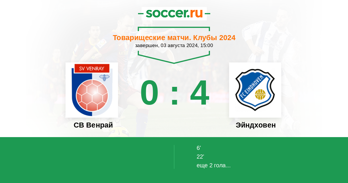 Протокол матча СВ Венрай против Эйндховен