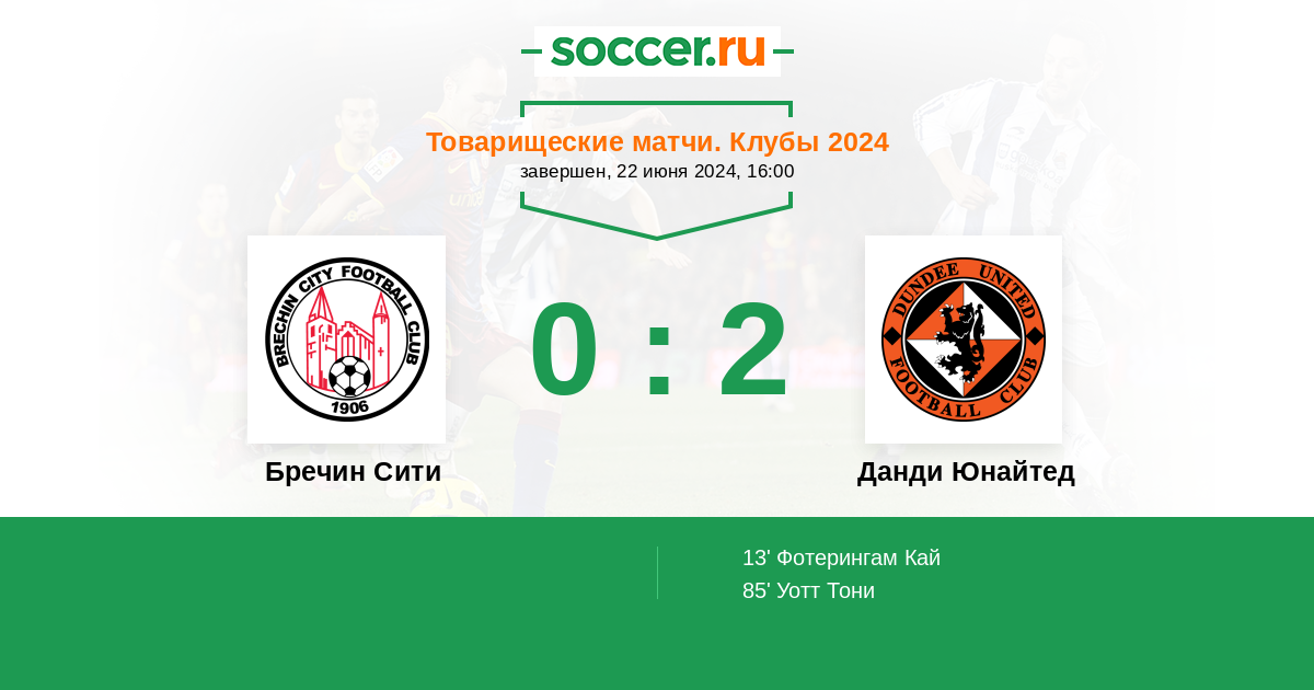 Протокол матча Бречин Сити против Данди Юнайтед