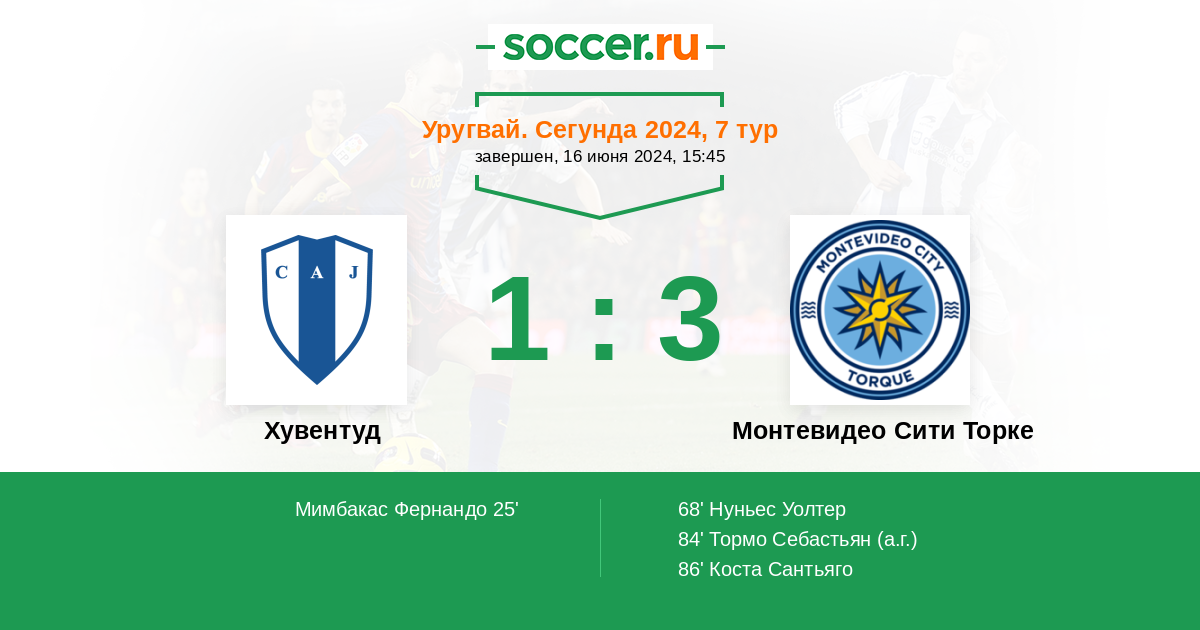 Протокол матча Хувентуд против Монтевидео Сити Торке