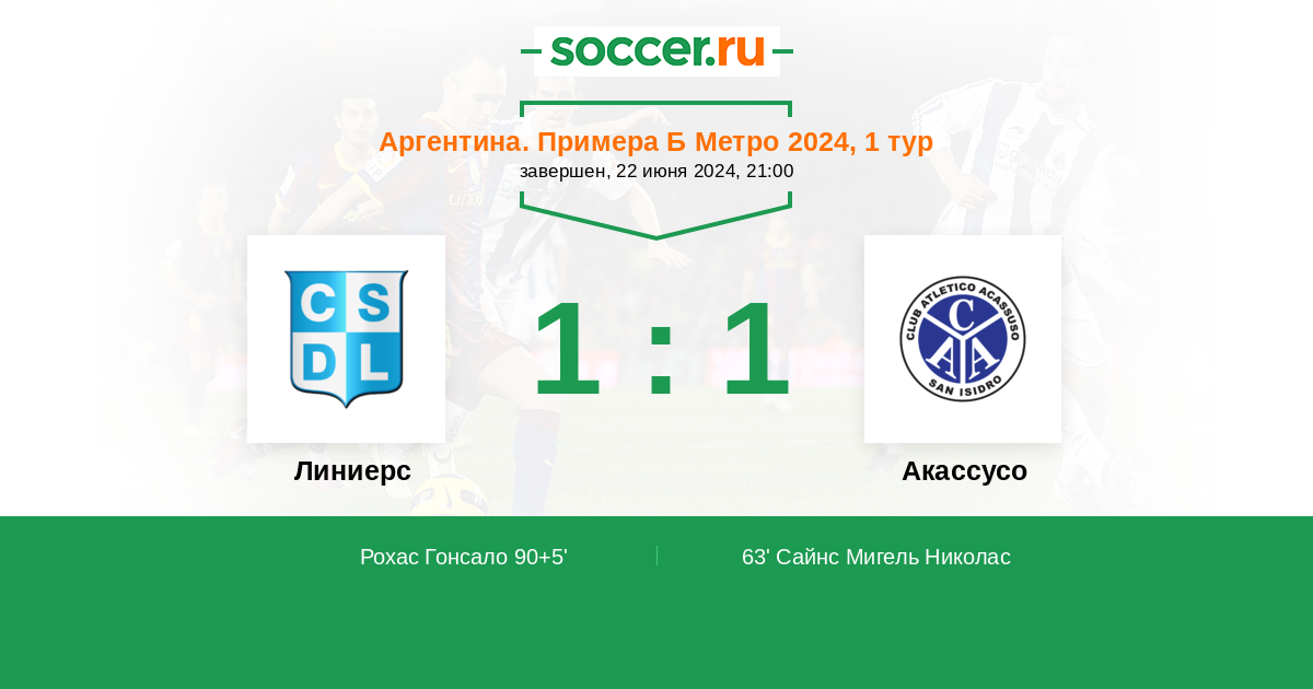 Протокол матча Линиерс против Акассусо