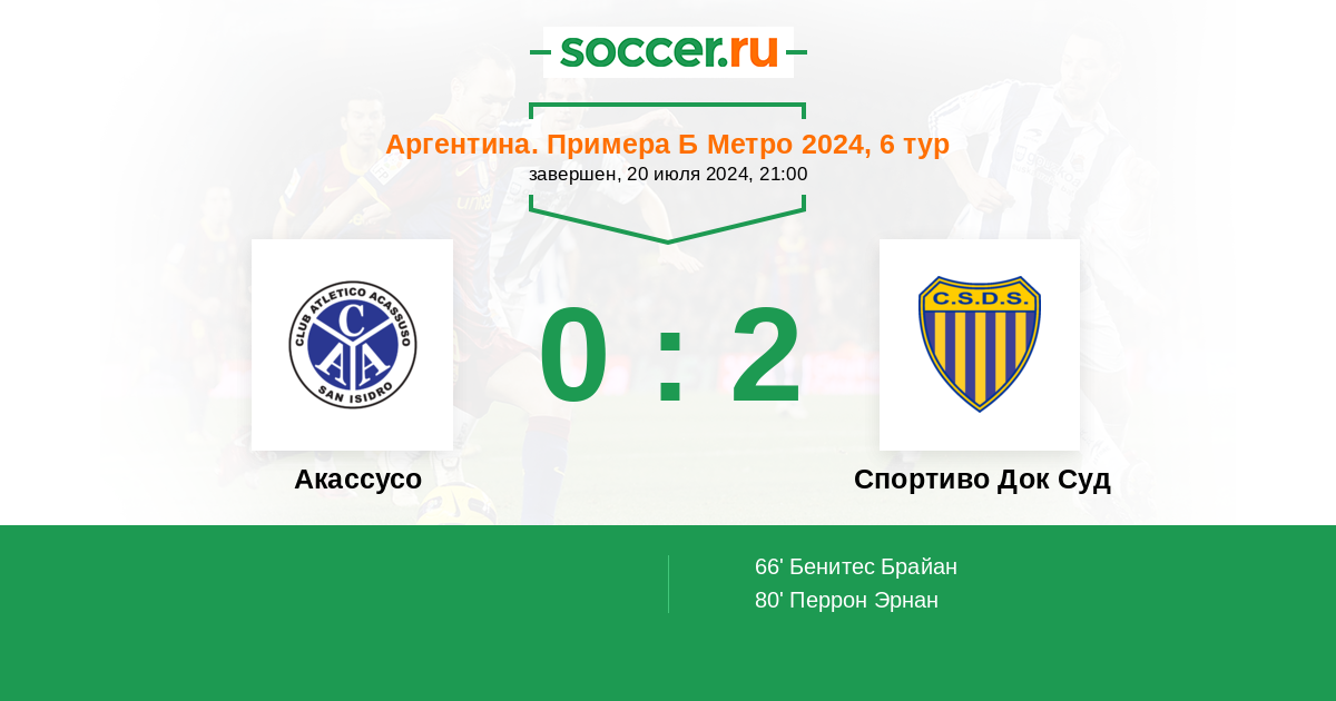 Протокол матча Акассусо против Спортиво Док Суд