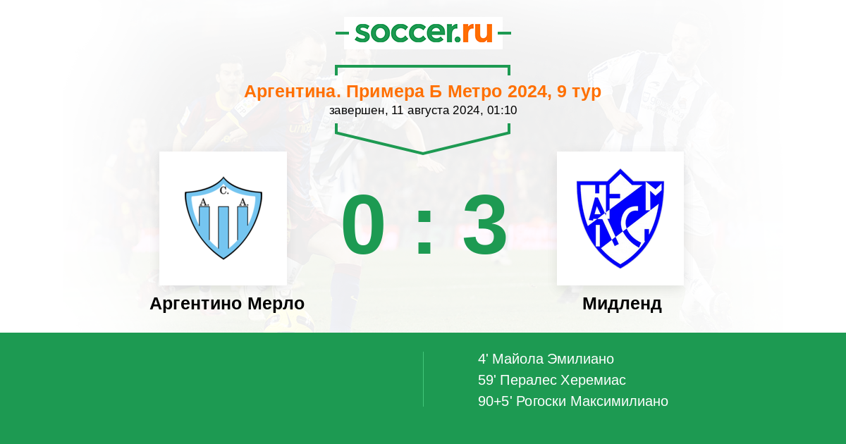 Протокол матча Аргентино Мерло против Мидленд