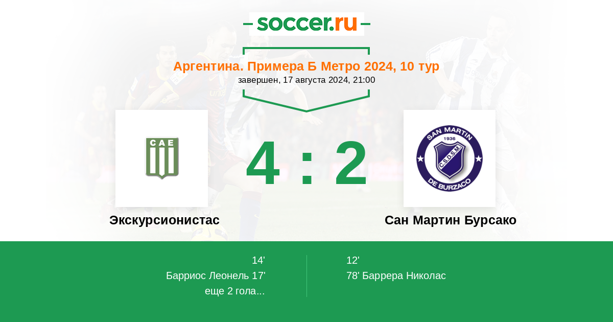 Протокол матча Экскурсионистас против Сан Мартин Бурсако