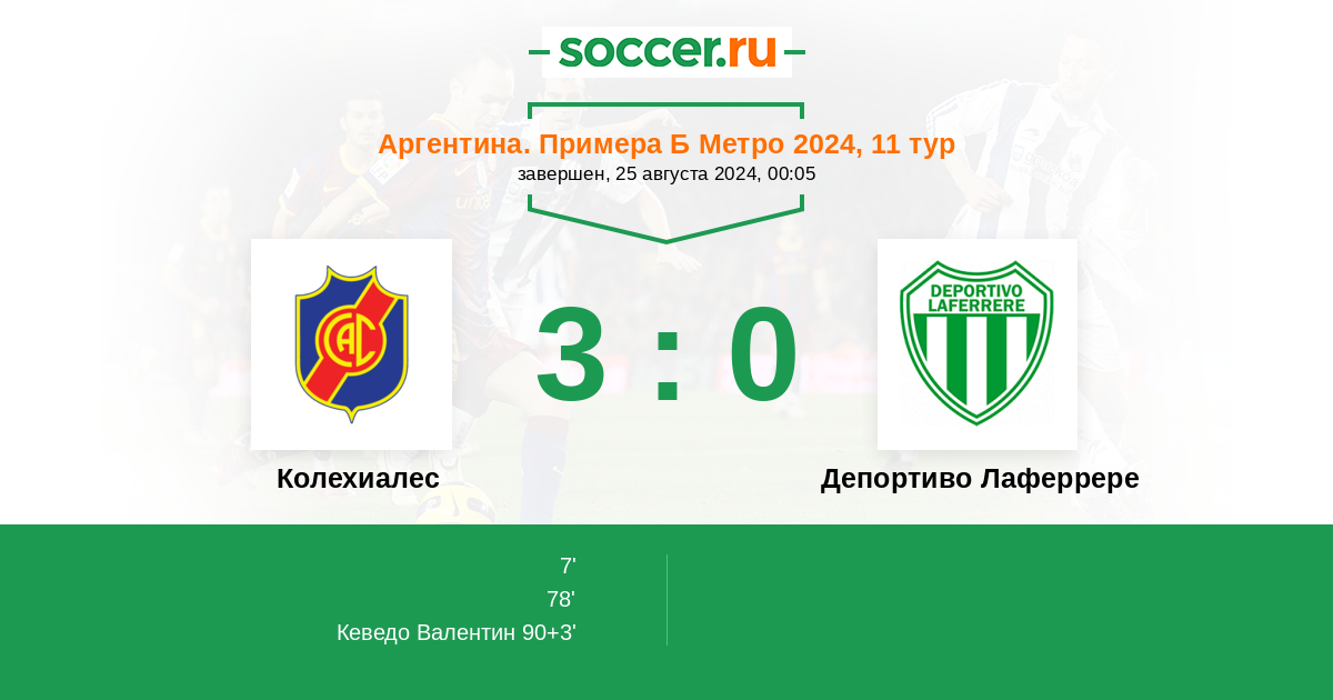 Протокол матча Колехиалес против Депортиво Лаферрере