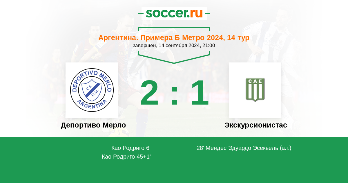 Протокол матча Депортиво Мерло против Экскурсионистас