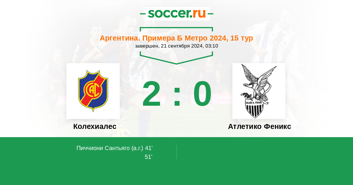 Протокол матча Колехиалес против Атлетико Феникс