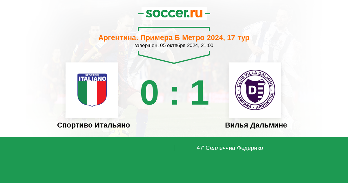Протокол матча Спортиво Итальяно против Вилья Дальмине