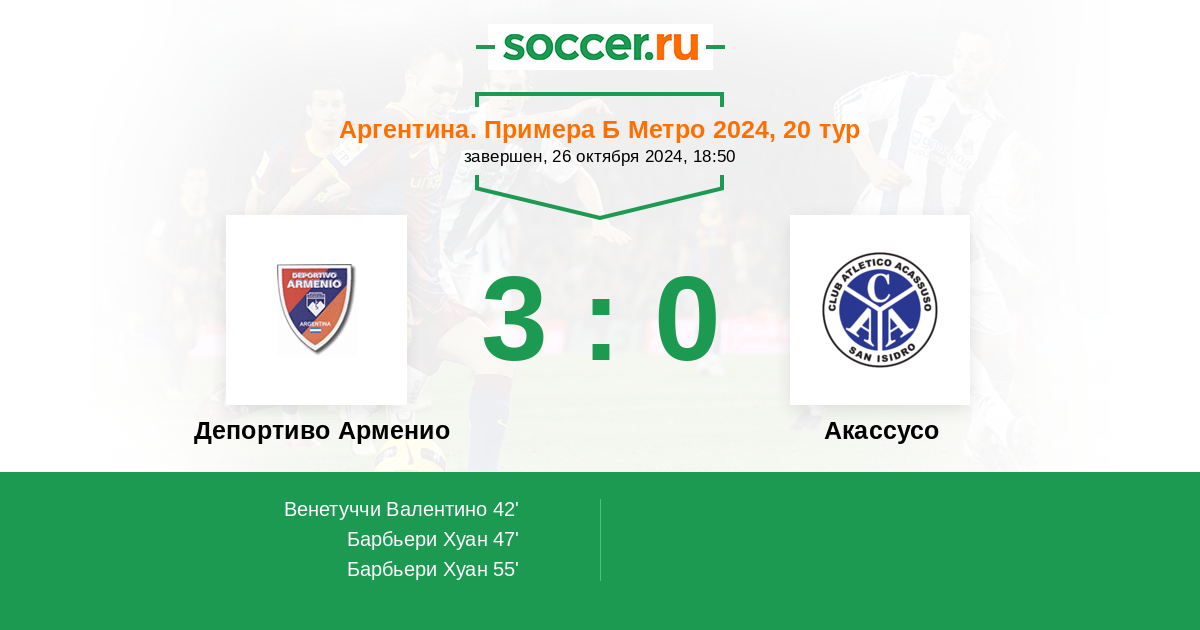 Протокол матча Депортиво Арменио против Акассусо