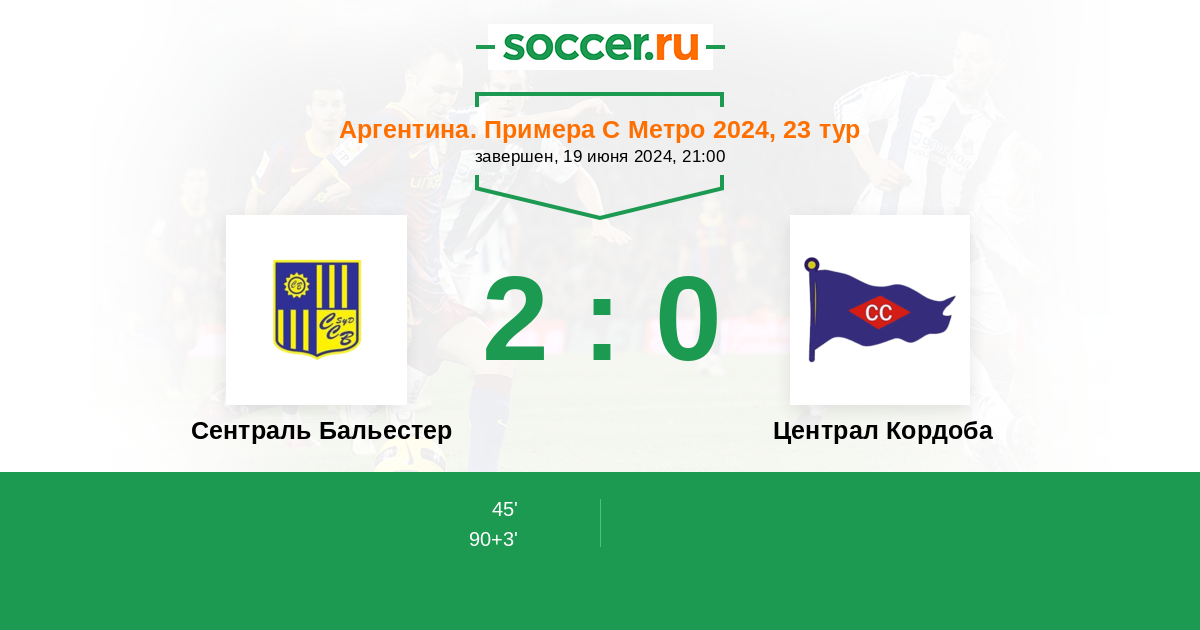 Протокол матча Сентраль Бальестер против Централ Кордоба