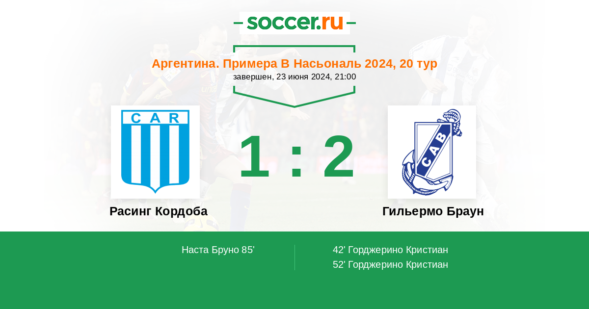 Протокол матча Расинг Кордоба против Гильермо Браун