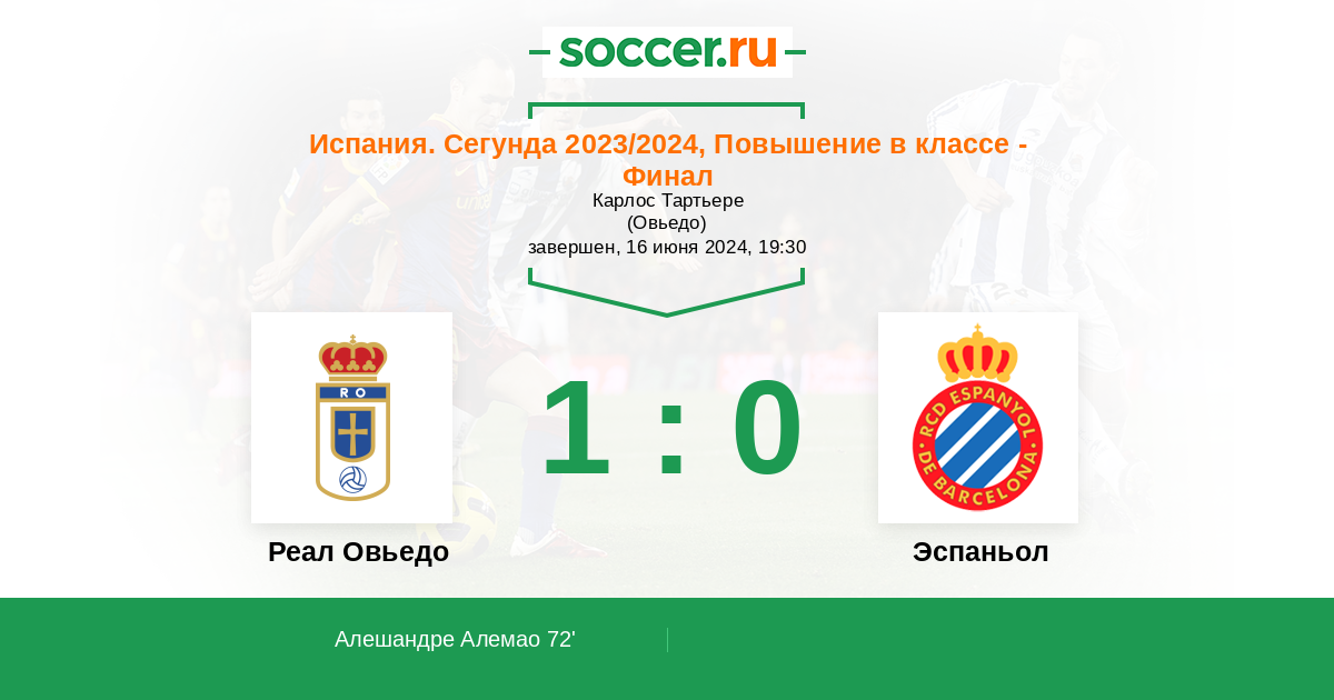 Протокол матча Реал Овьедо против Эспаньол