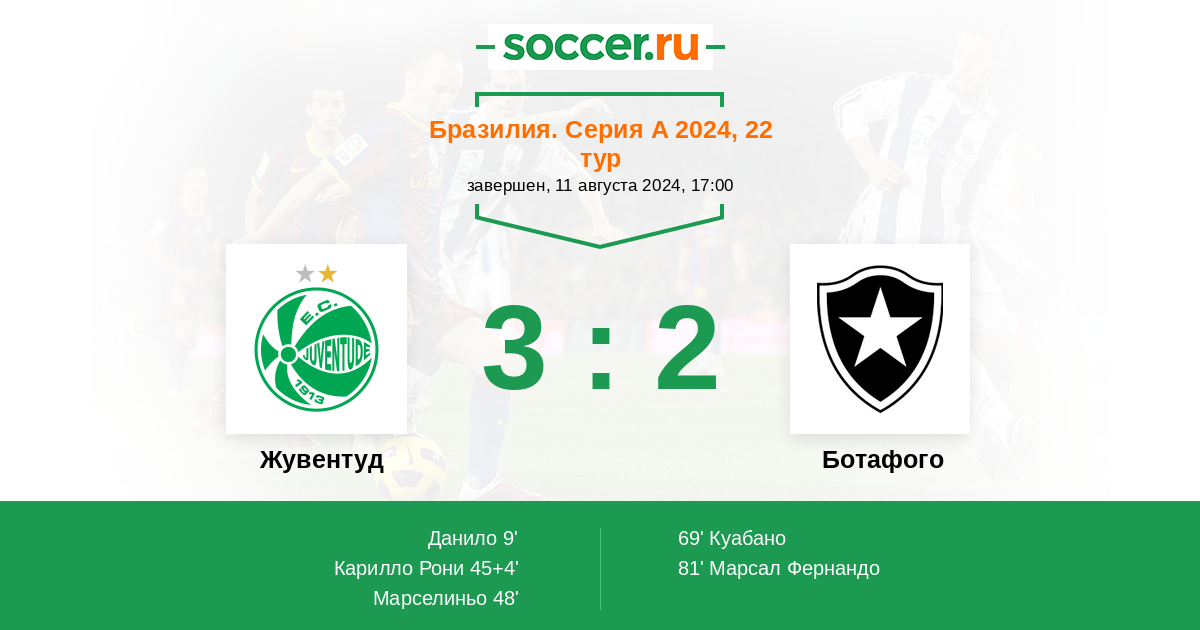 Протокол матча Жувентуд против Ботафого