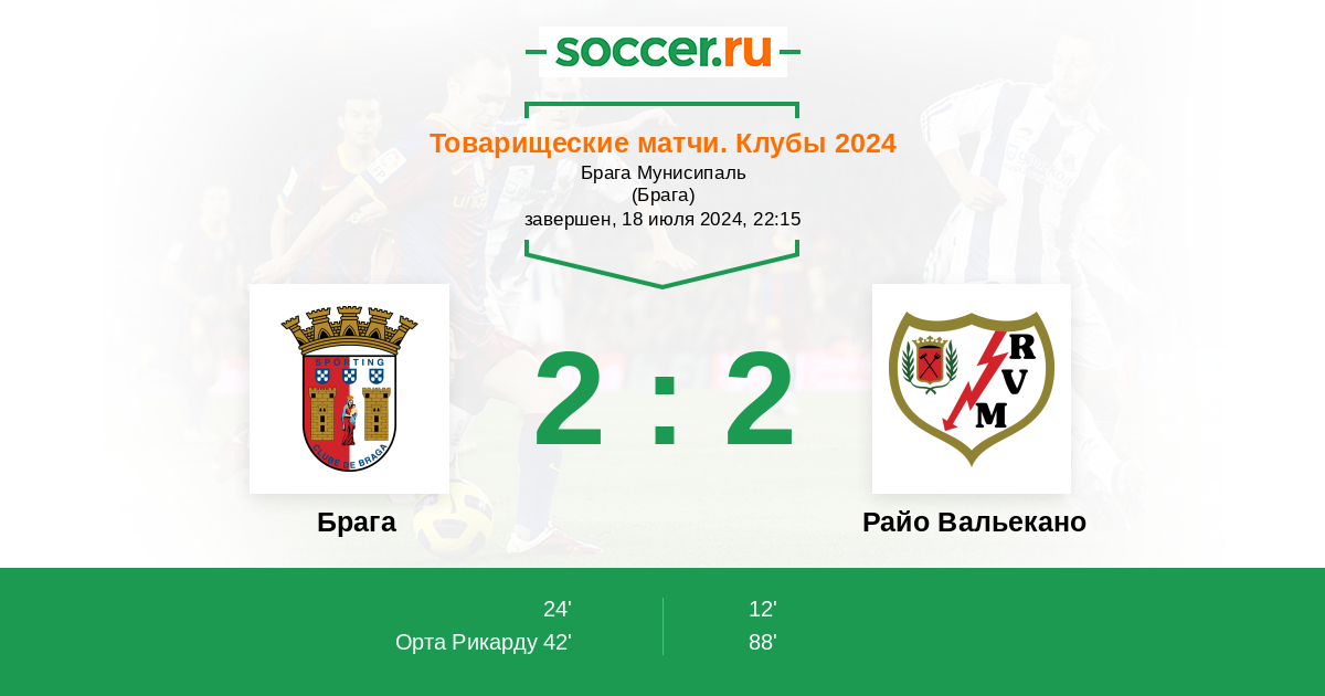 Протокол матча Брага против Райо Вальекано