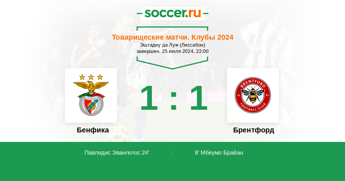 Протокол матча Бенфика против Брентфорд