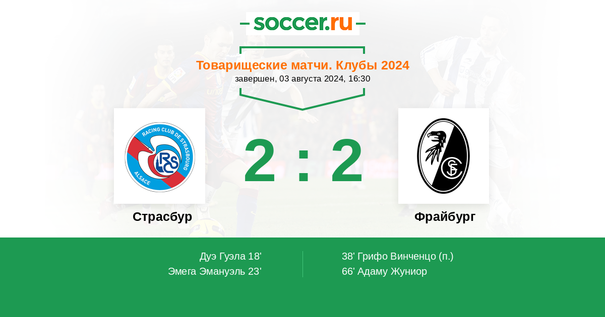 Протокол матча Страсбур против Фрайбург