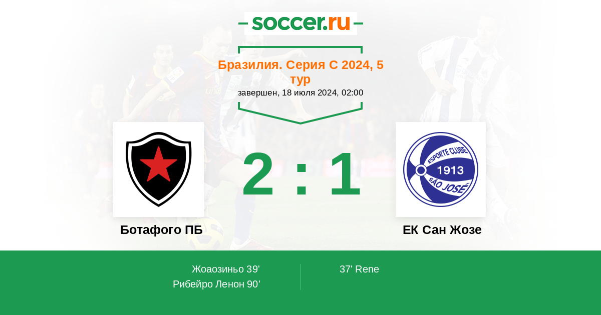 Протокол матча Ботафого ПБ против ЕК Сан Жозе