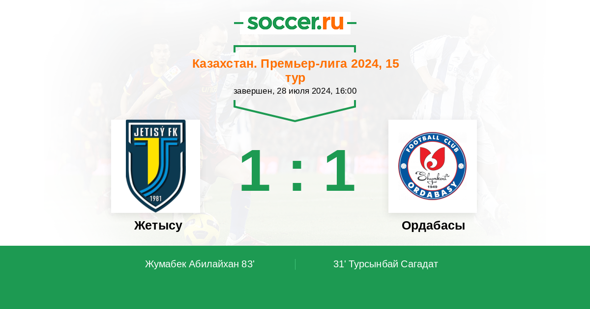Протокол матча Жетысу против Ордабасы