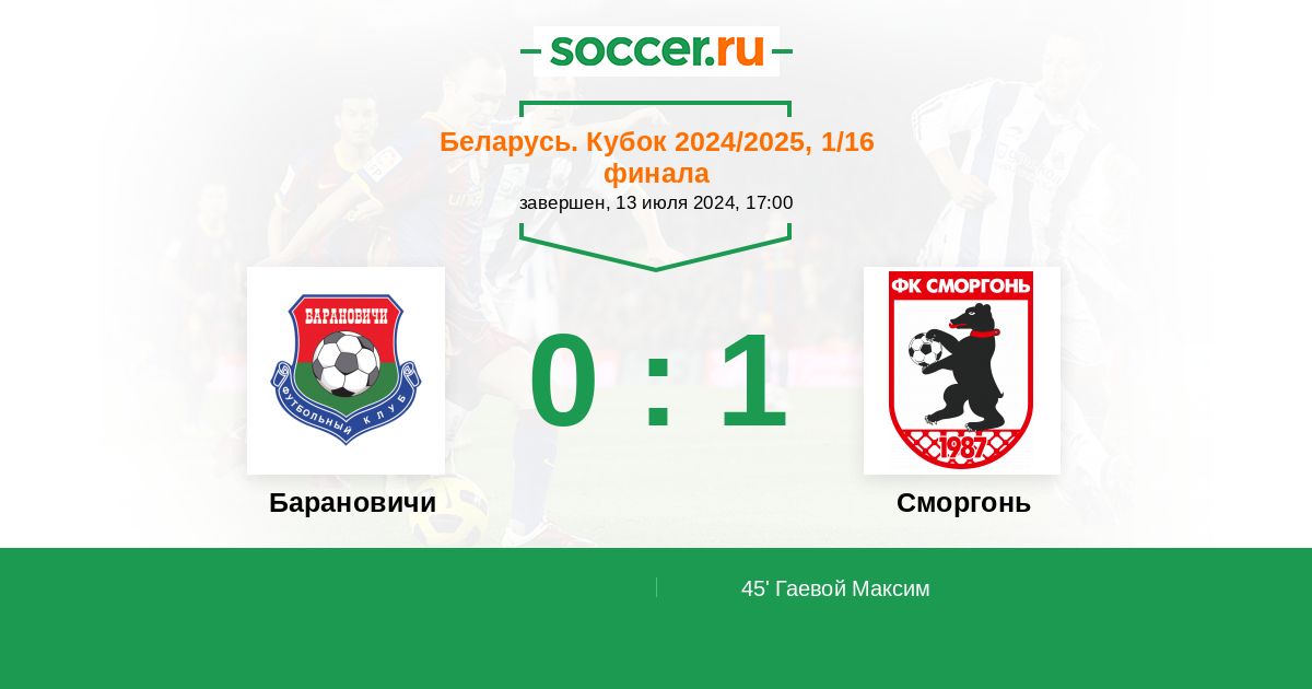 Протокол матча Барановичи против Сморгонь