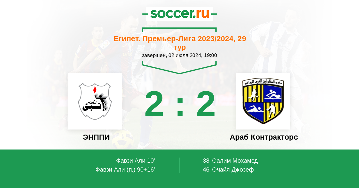Протокол матча ЭНППИ против Араб Контракторс