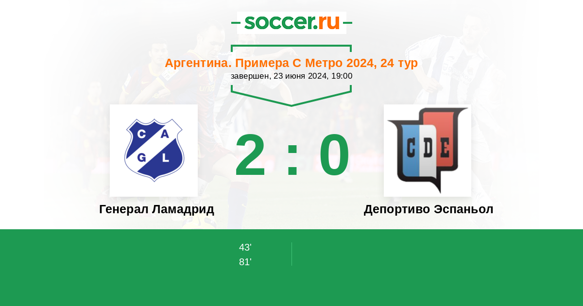 Протокол матча Генерал Ламадрид против Депортиво Эспаньол
